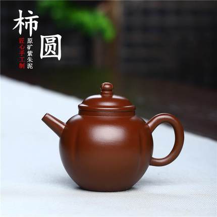 紫砂壶厂家直供宜兴原矿紫朱泥茶壶柿圆壶名家纯全手工茶壶