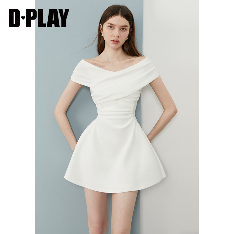DPLAY【腰精裙系列】2025年夏季新款白色收腰连衣裙女短裙小白裙