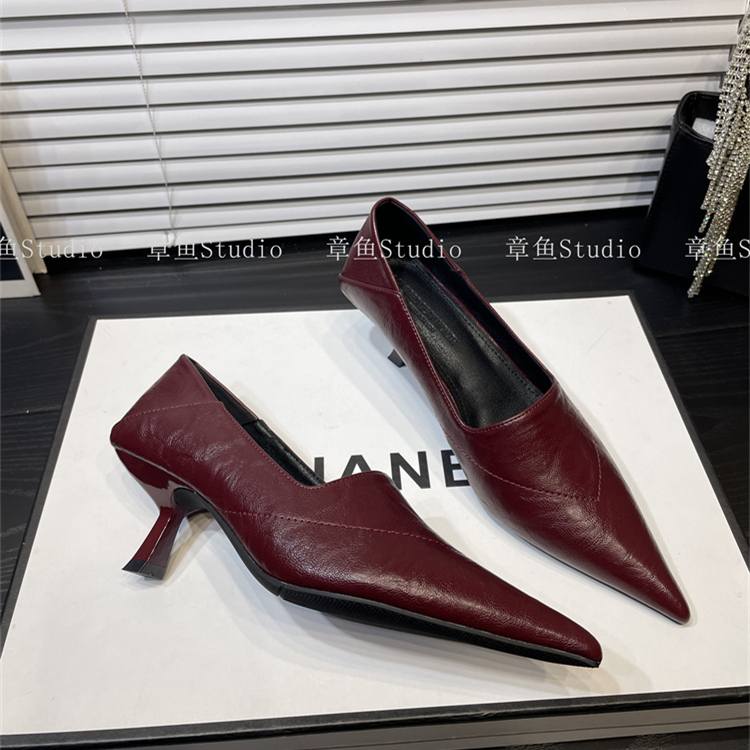 安可拉红!法式软皮酒红色工作鞋女OL通勤深口尖头单鞋细跟高跟鞋