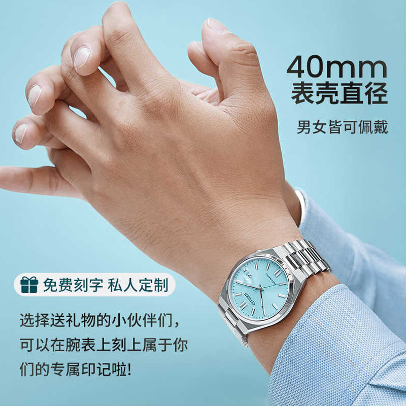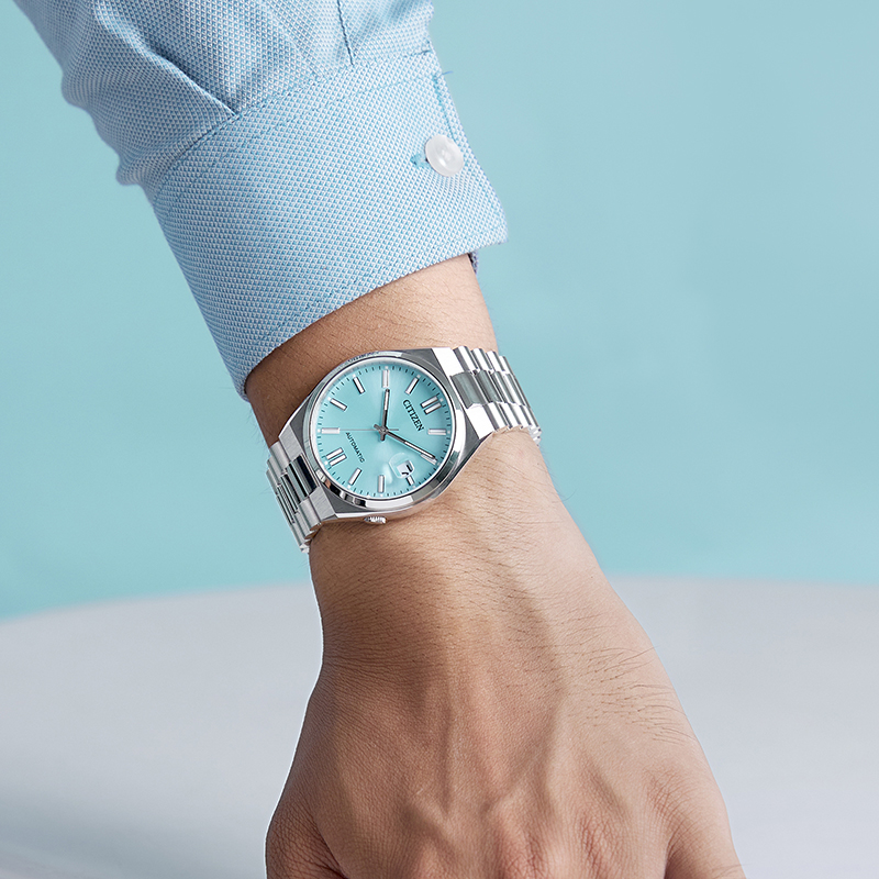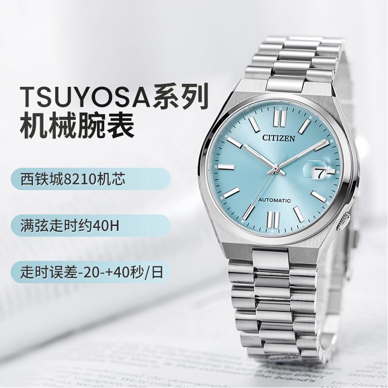 【自营】西铁城手表男 ME彩冰蓝表盘时尚钢带机械男表NJ0151-88M