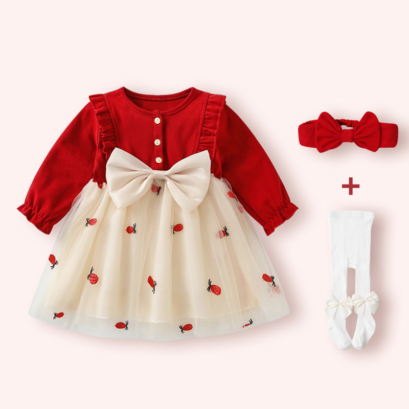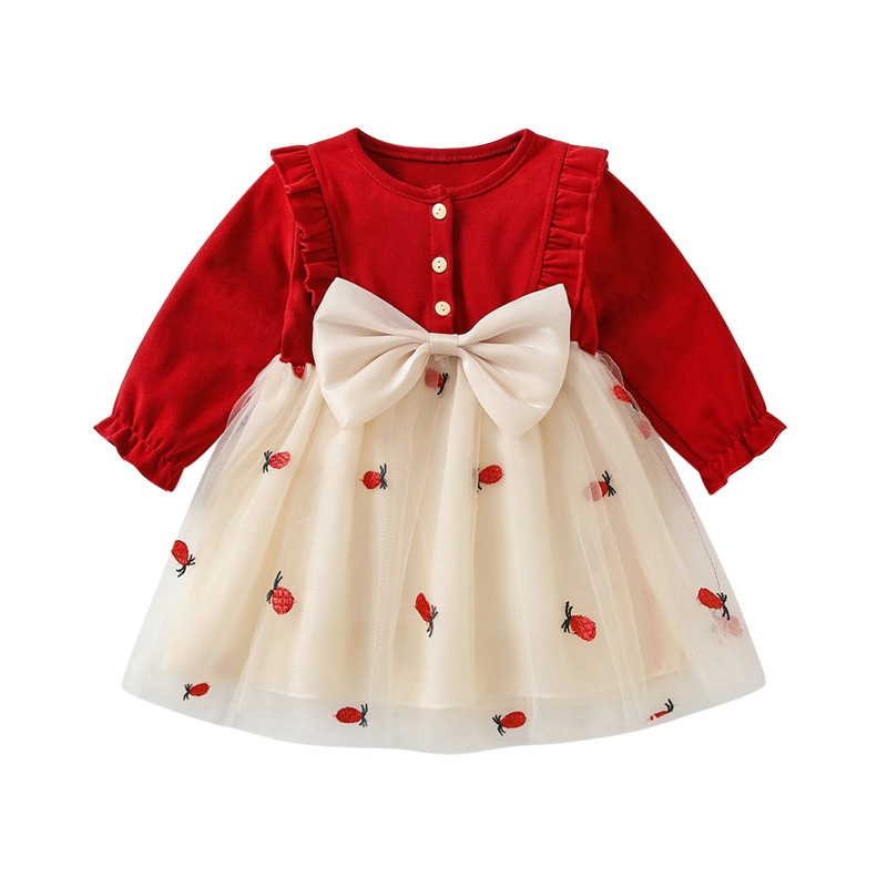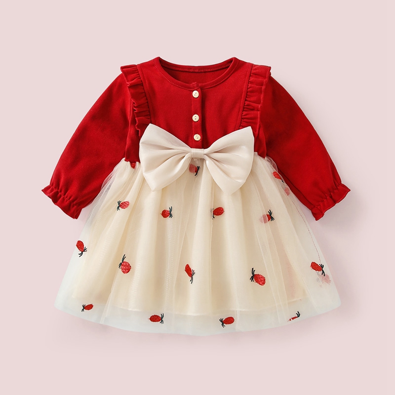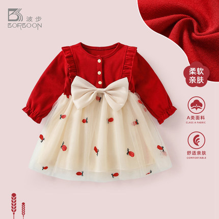 周岁女宝礼服红色连衣裙婴儿衣服抓周宝宝裙子一岁公主裙女童秋装