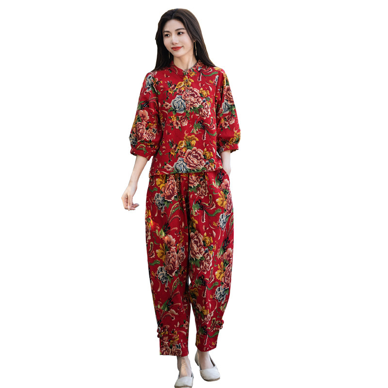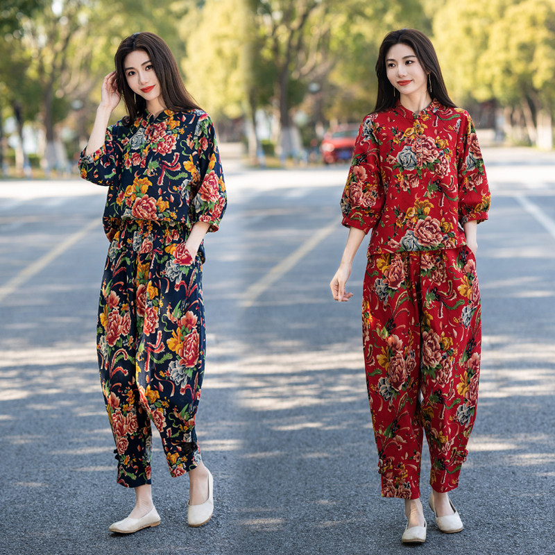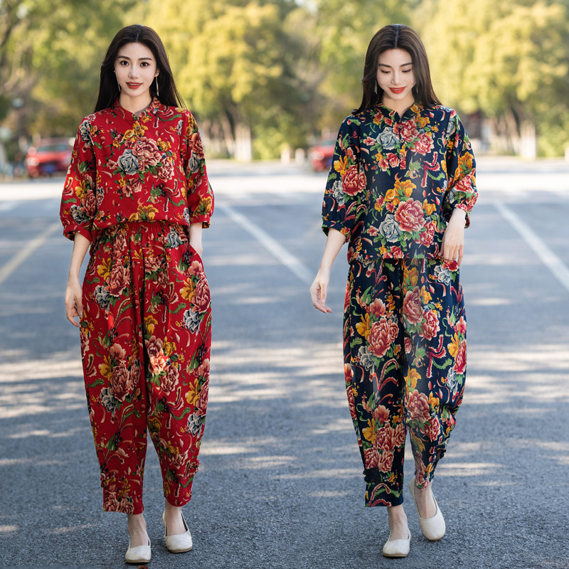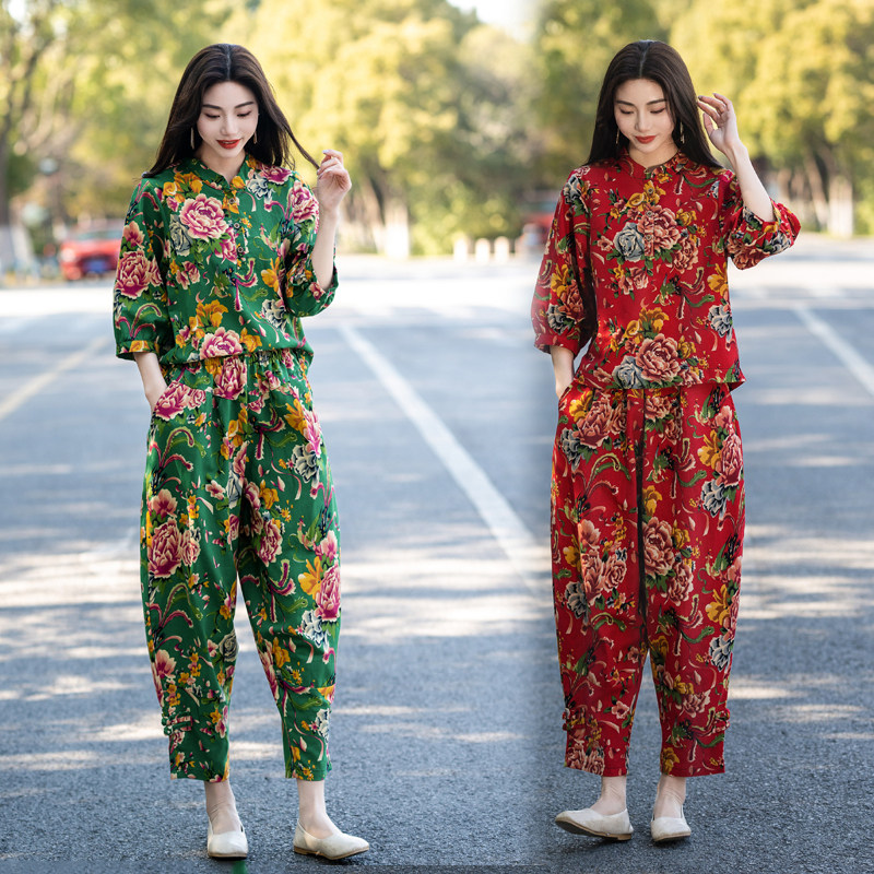 2023女新款东北大花套装大花布衣服民族风跳舞秧歌服复古国潮女装