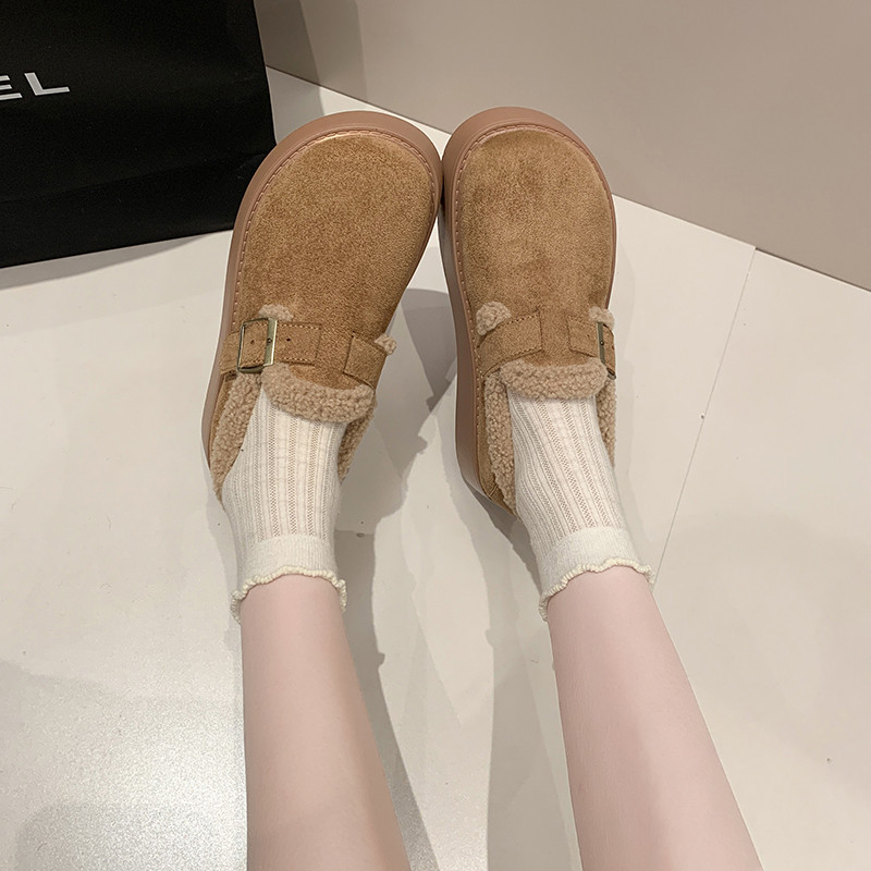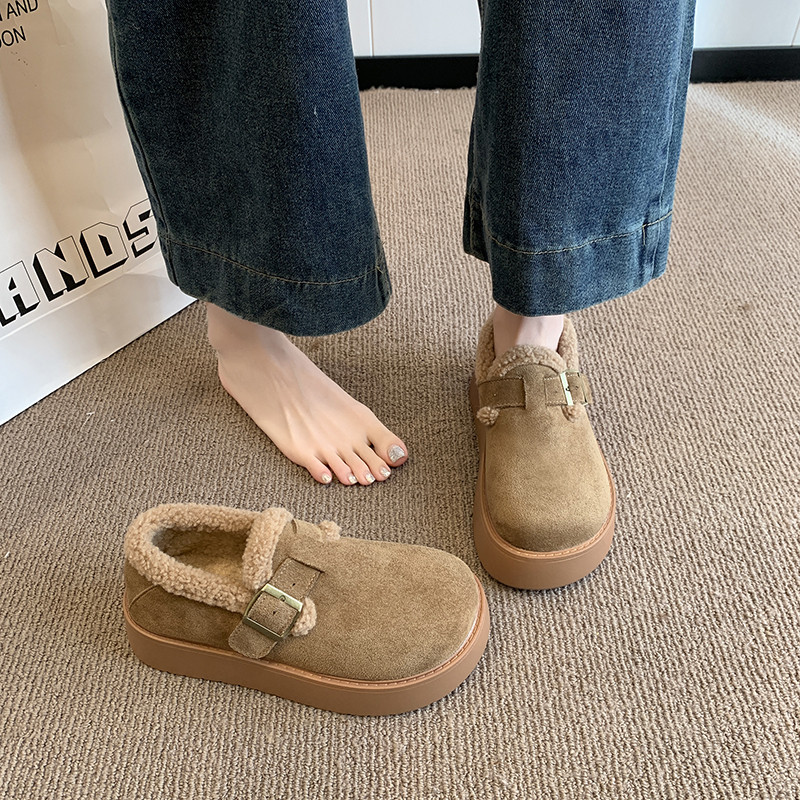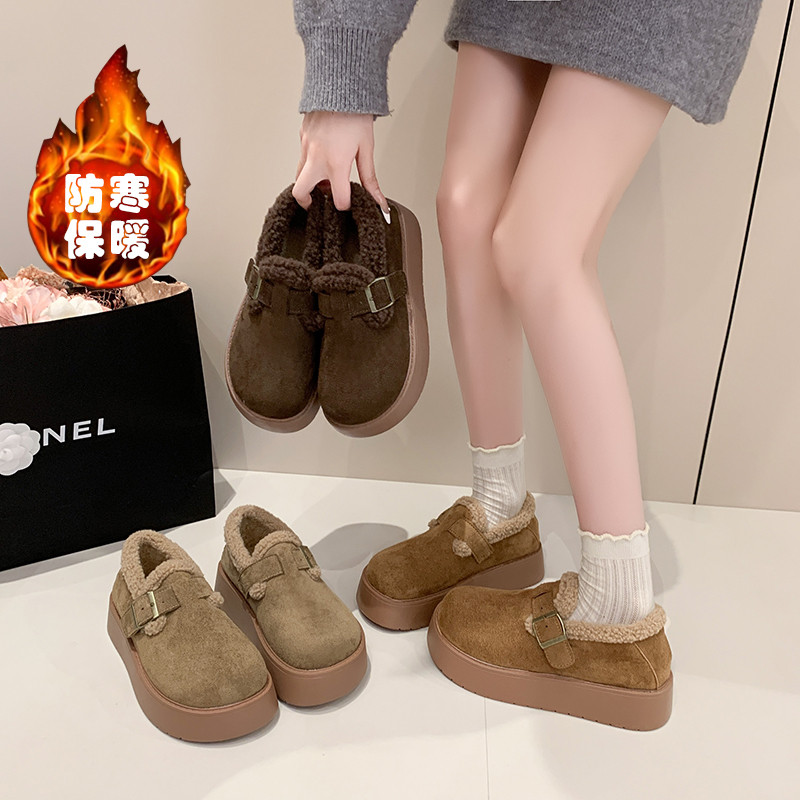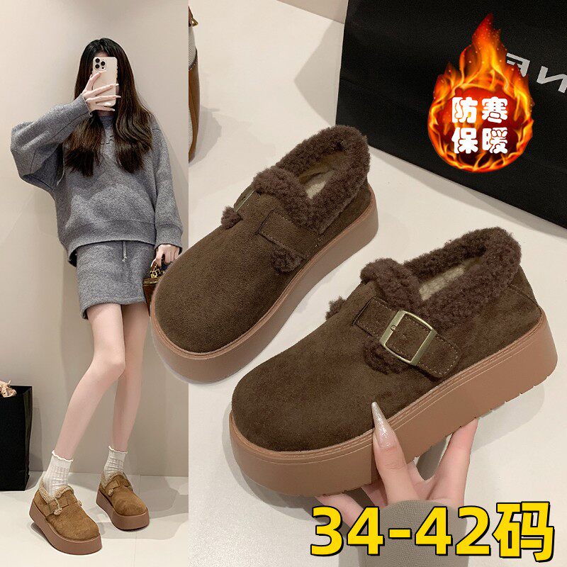 大码女鞋41到43加绒勃肯鞋女2025新款冬季厚底增高乐福棉鞋雪地靴