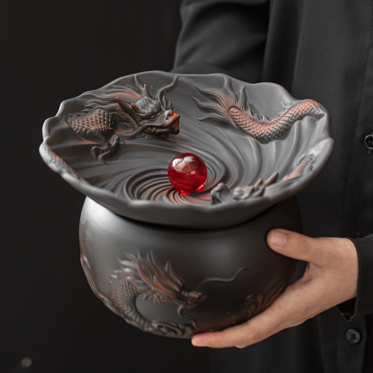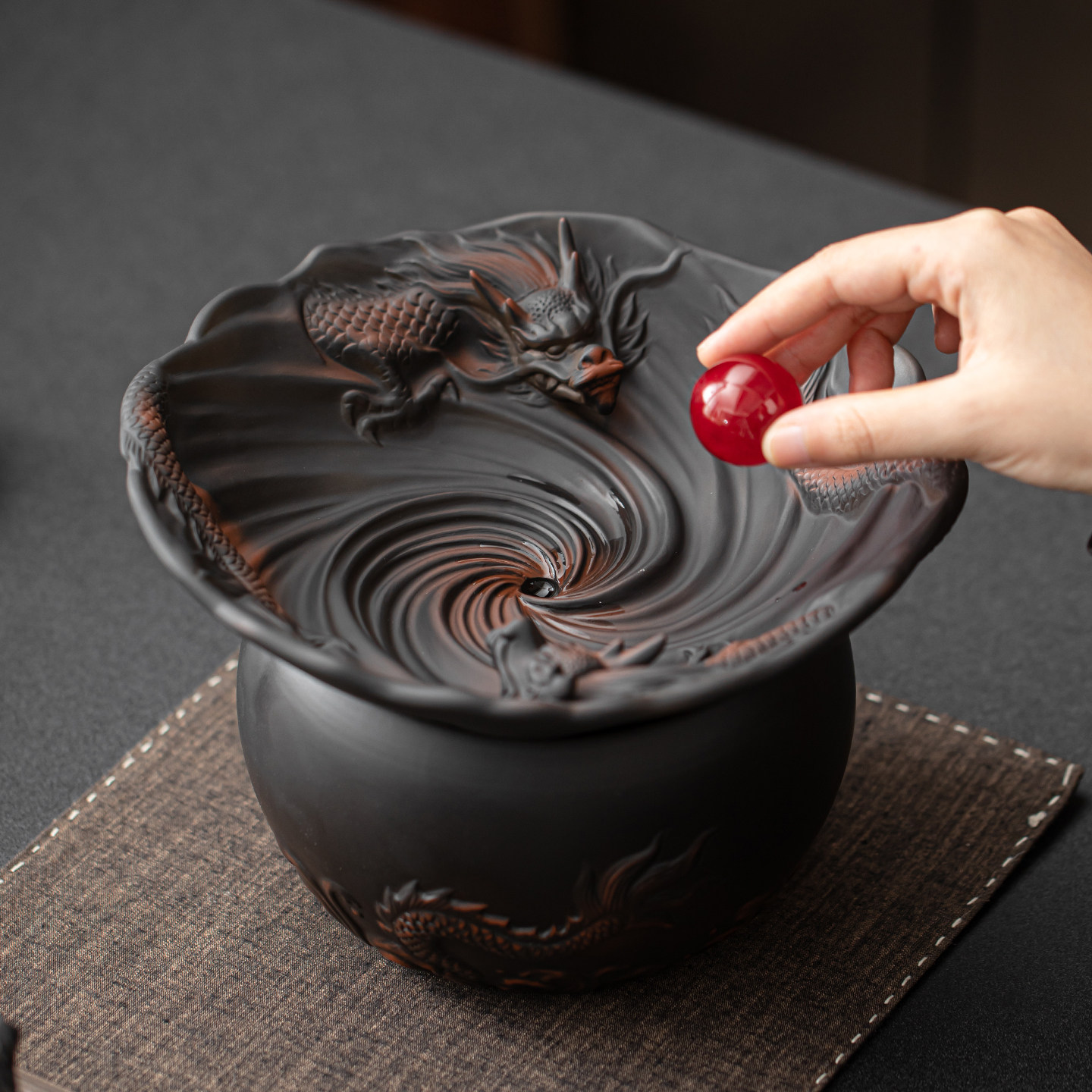 紫陶大号复古茶道带盖过滤水