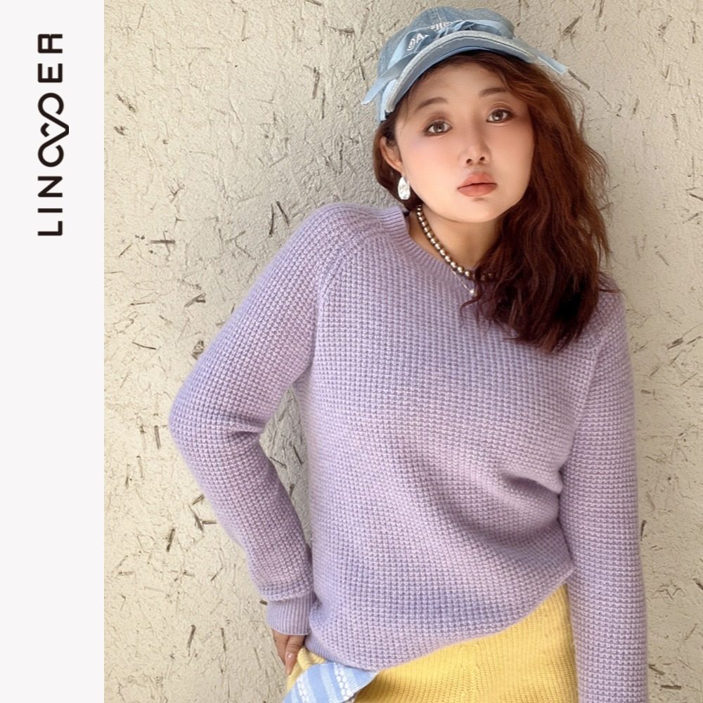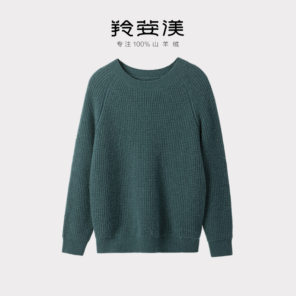 羚荌渼圆领插肩袖宽松加厚羊绒衫
