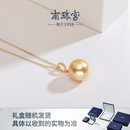 南珠宫18k金海水珍珠吊坠金珠南洋单颗送银链11-14mm女C-D001KN-J
