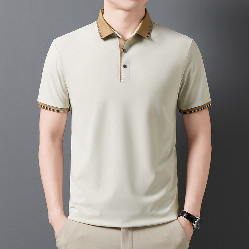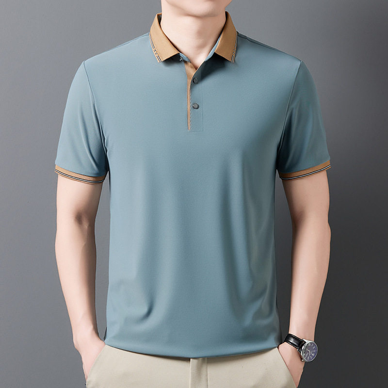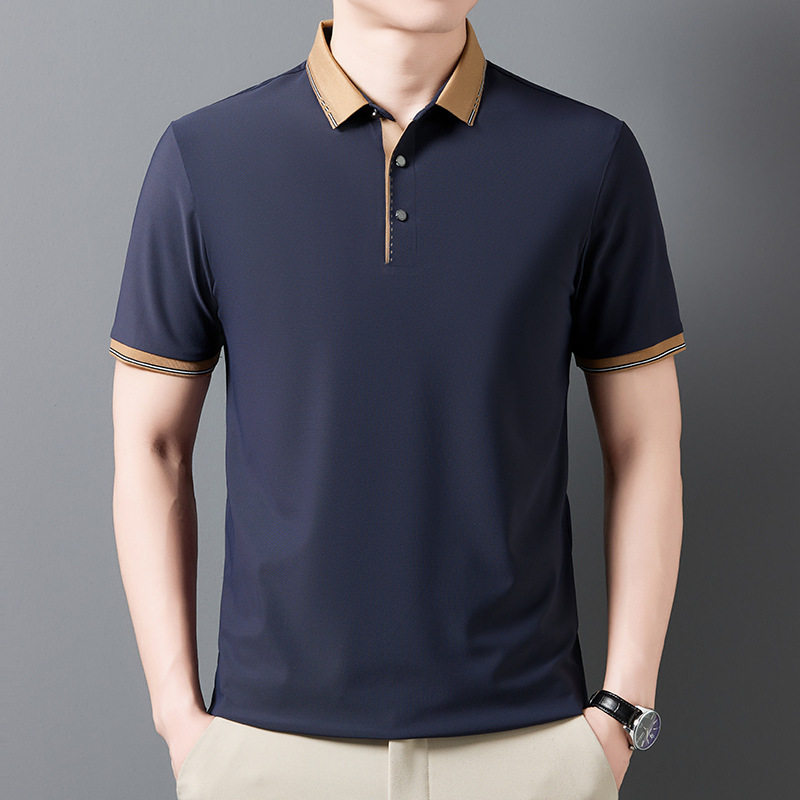 皮尔卡丹夏季高端桑蚕丝短袖Polo衫撞色领男士透气短袖爸爸装大码