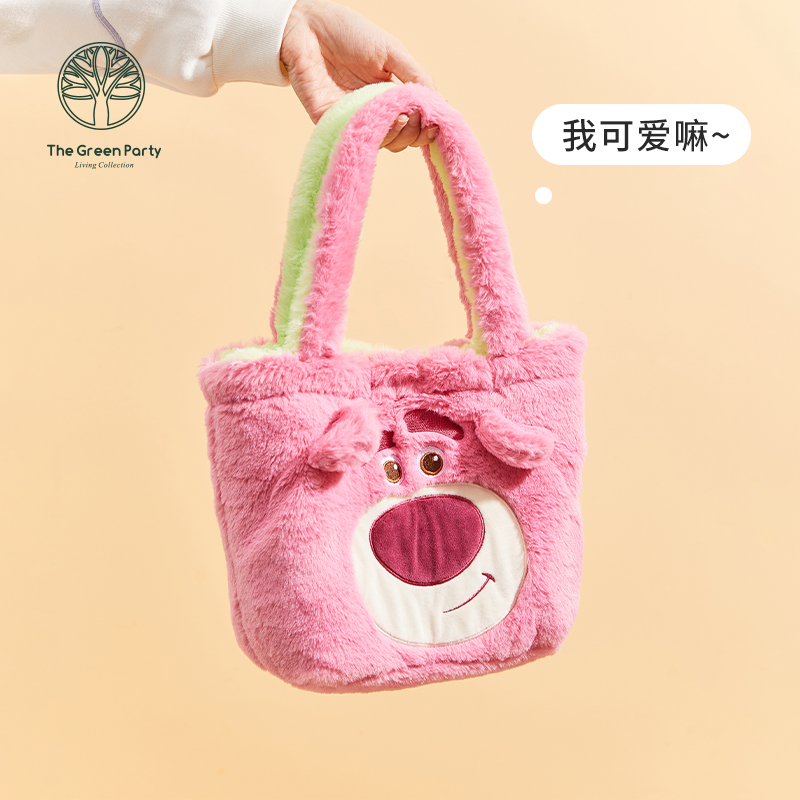 TheGreenParty草莓熊三眼仔手提袋毛绒迪士尼女逛街双面可用包包