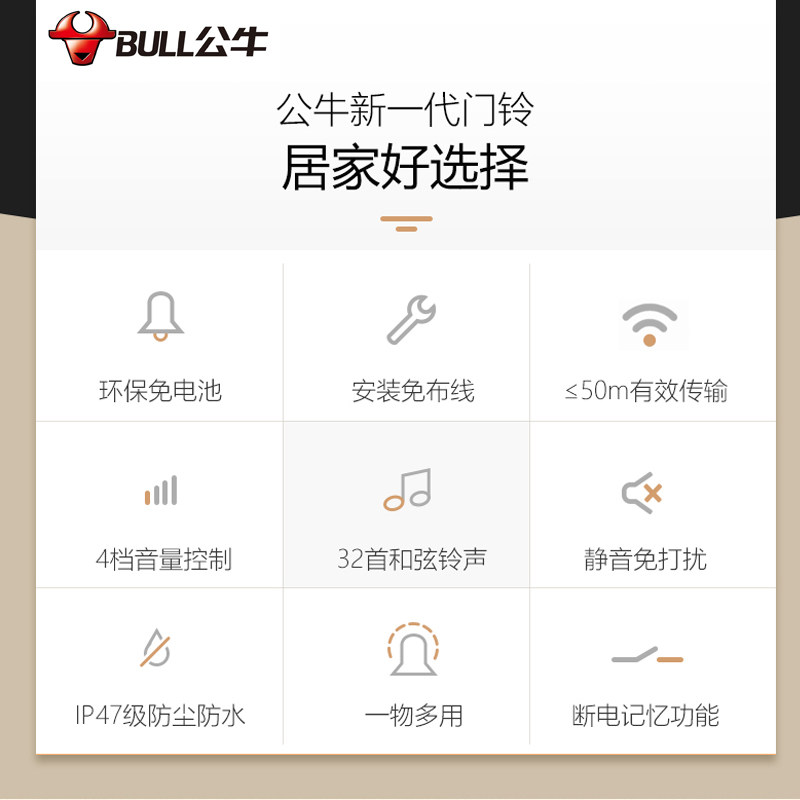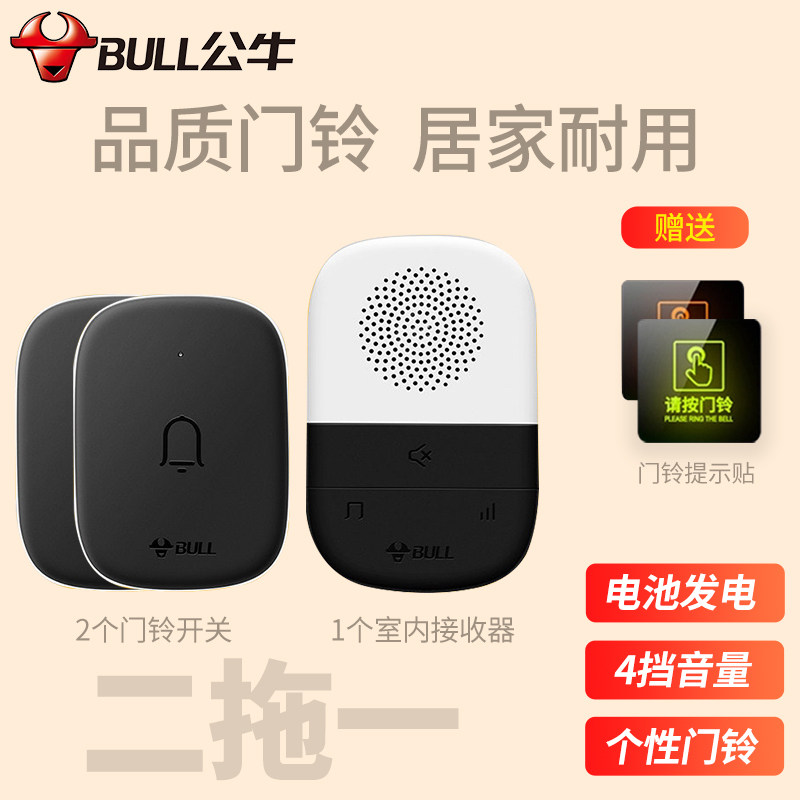 公牛门铃无线家用免插电老人呼叫器超远距离户外防水别墅免布线