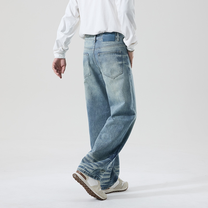 秋冬季男士牛仔时尚潮牌休闲微弹怀旧宽松直筒青年牛仔裤男