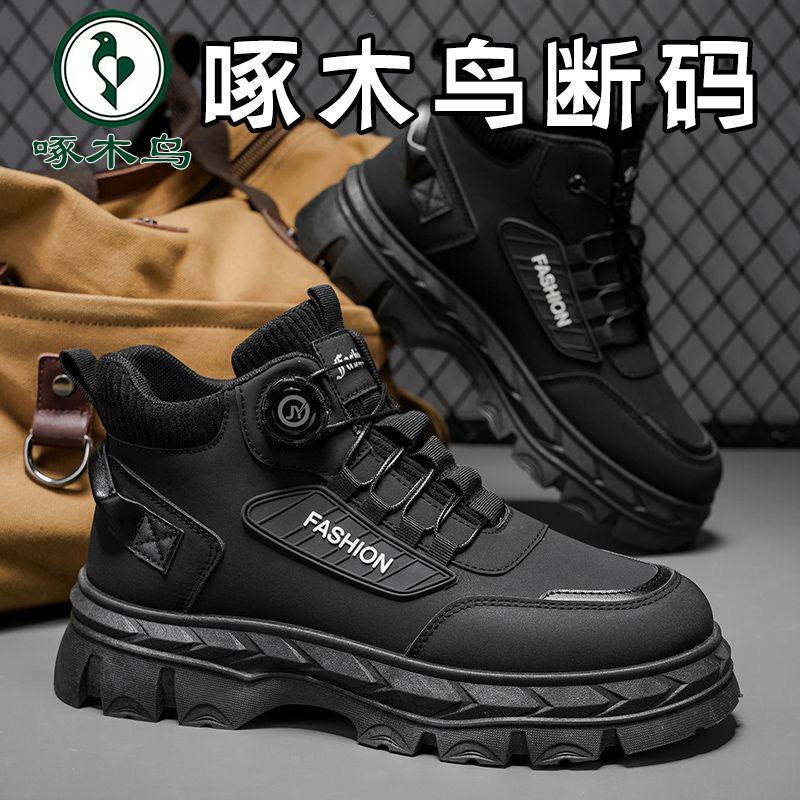 啄木鸟断码真皮男鞋秋冬户外马丁靴厚底防滑增高防水鞋百搭高帮鞋
