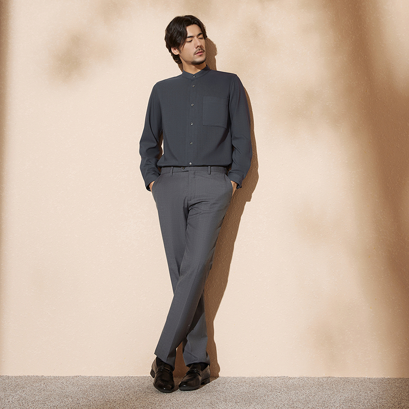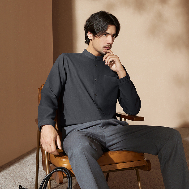 【中华立领】柒牌立领衬衫男士秋季新款时尚休闲中国风长袖衬衣