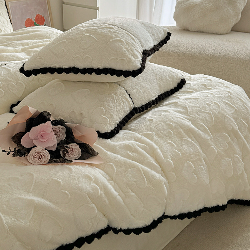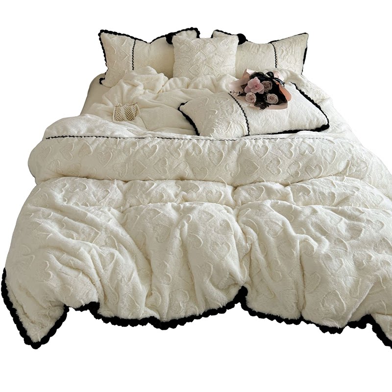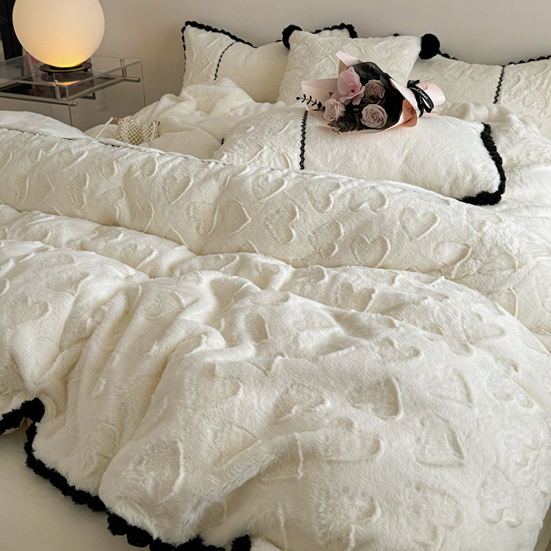 冬季少女爱心兔绒四件套公主风双面绒牛奶绒珊瑚绒加厚白被套床单