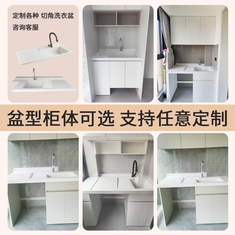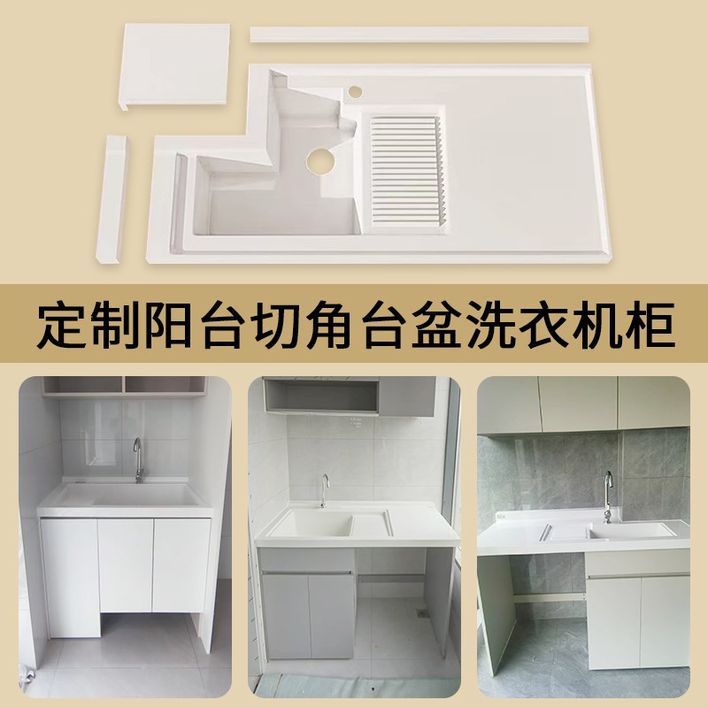 定制阳台洗手盆柜组合切角阳台柜蜂窝铝洗衣机柜洗衣池台盆一体柜