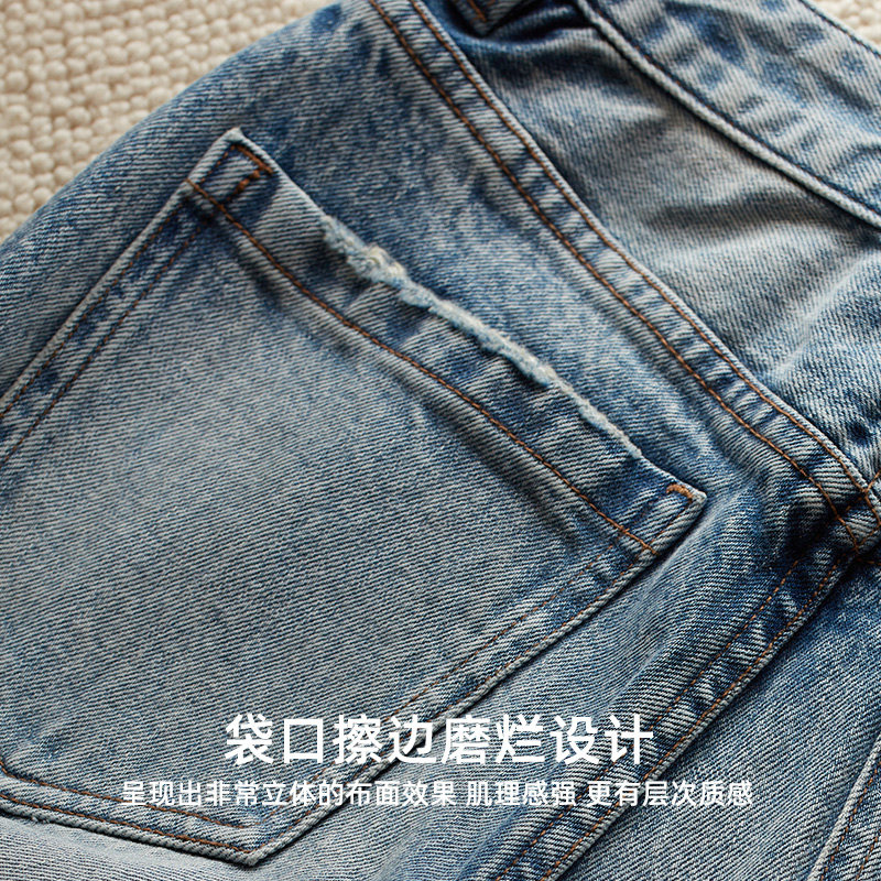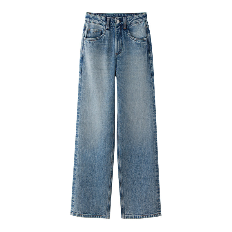 高腰水洗复古直筒牛仔裤女