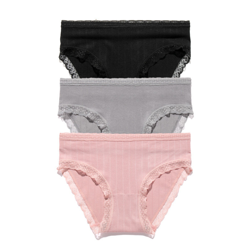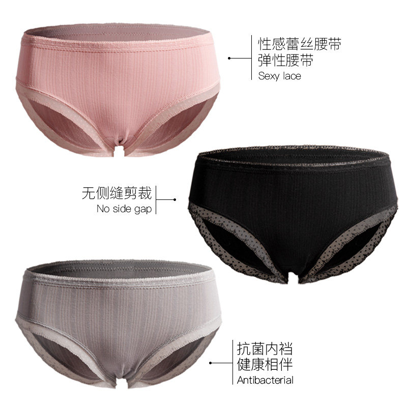 棉花共和国蕾丝底裆纯棉内裤少女抗菌透气日系夏季莫代尔中腰无痕