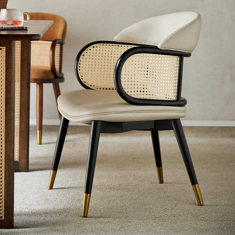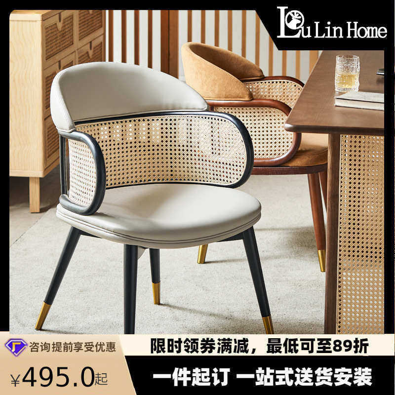 餐椅风茶店网椅简约实木咖啡厅轻藤编化妆现代椅子奢餐厅红ins奶