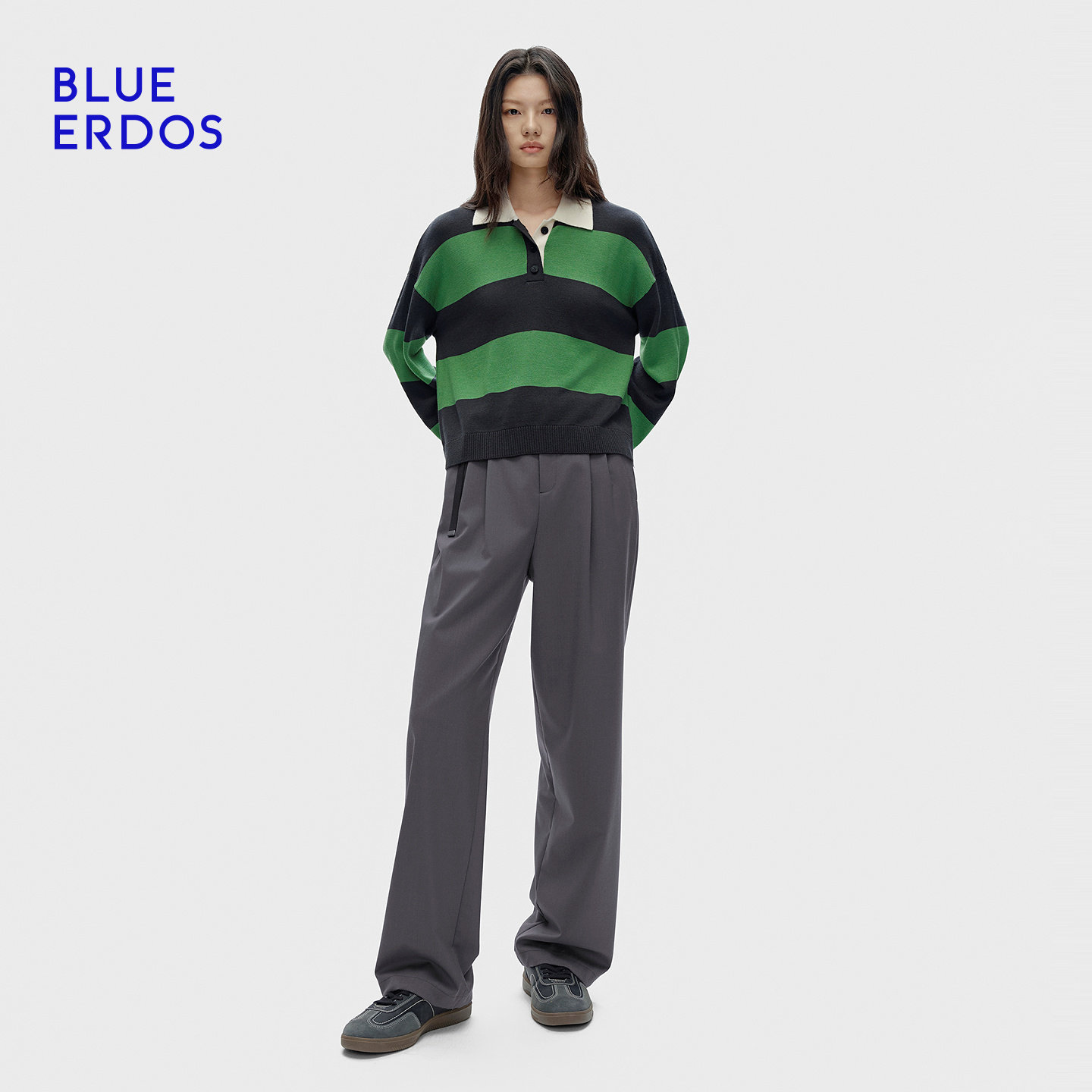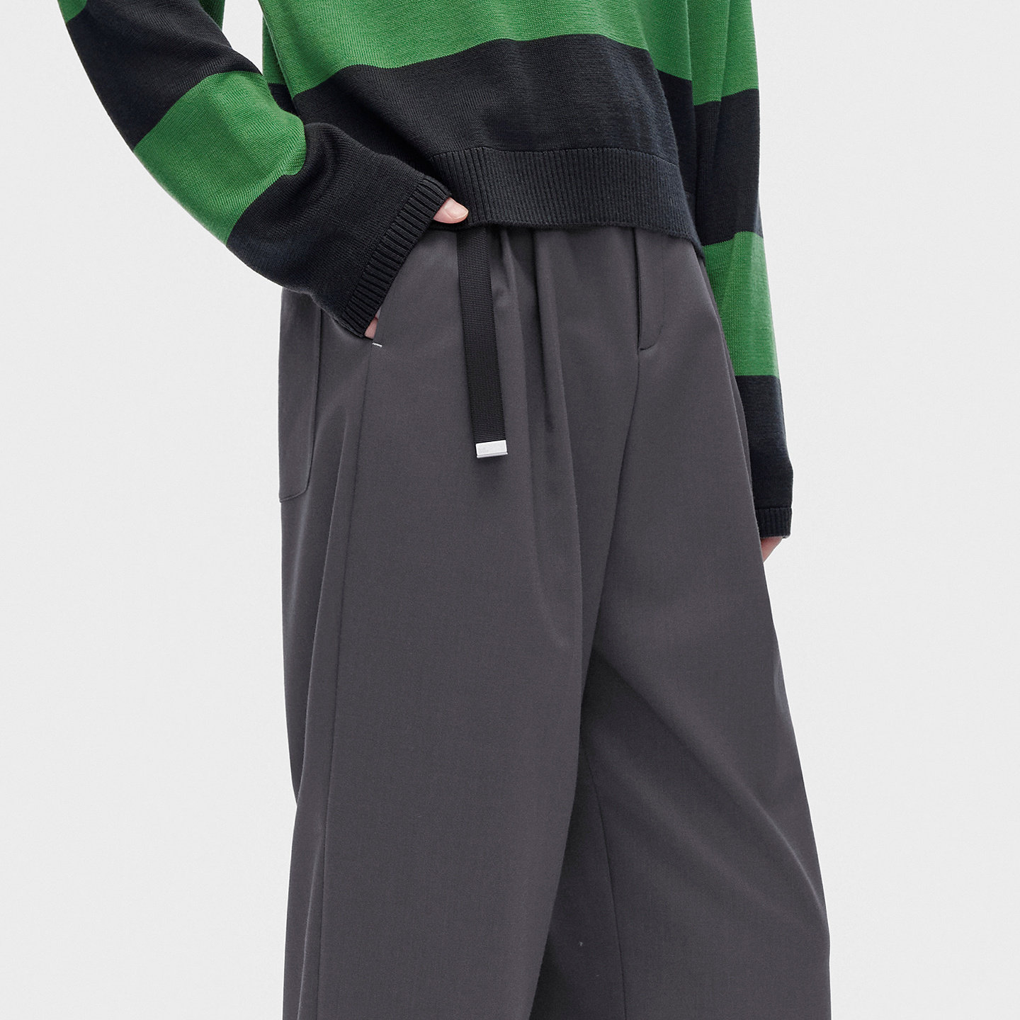 BLUE ERDOS 冬季新品休闲通勤深灰色松紧腰卡扣裤女裤B256M1002