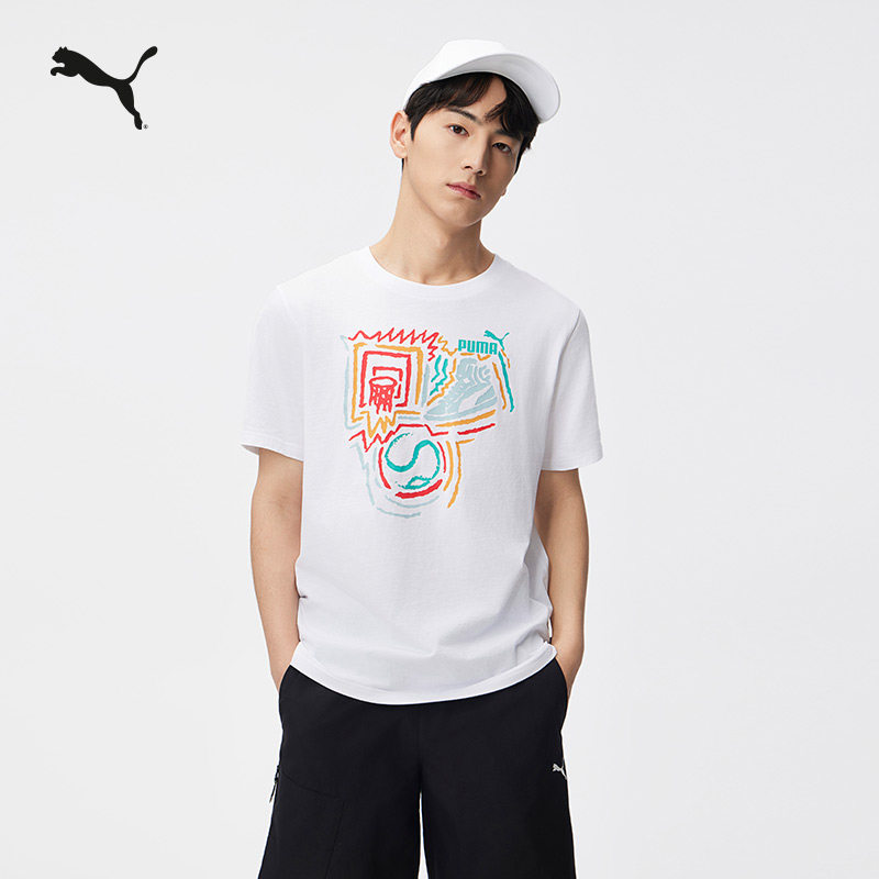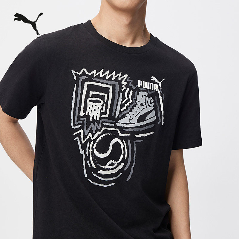 篮球运动印花短袖男纯棉舒适圆领简约T恤 682151彪马puma官方奥莱