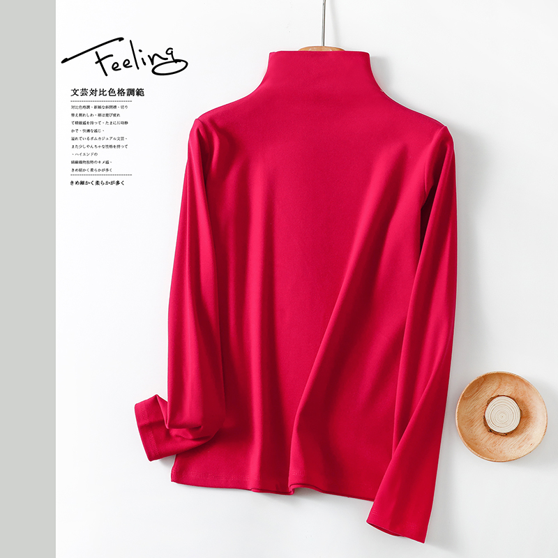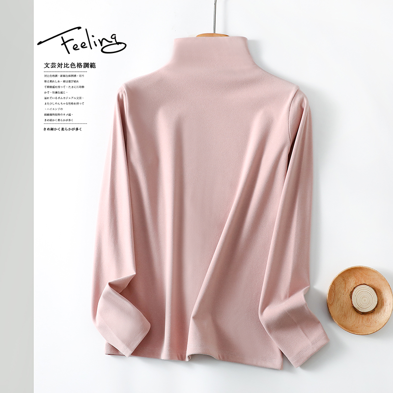 德绒半高领打底衫女秋冬长袖内搭T恤加绒加厚自发热磨毛上衣修身