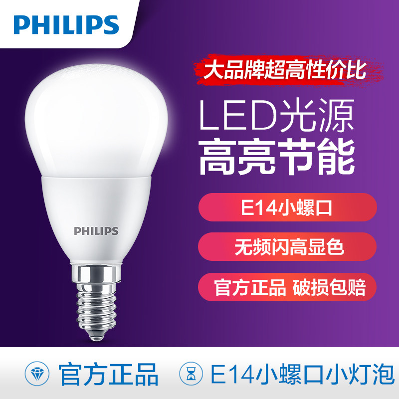飞利浦e14小螺口led灯泡小头节能灯3.5瓦12W照明吊灯家用迷你球泡
