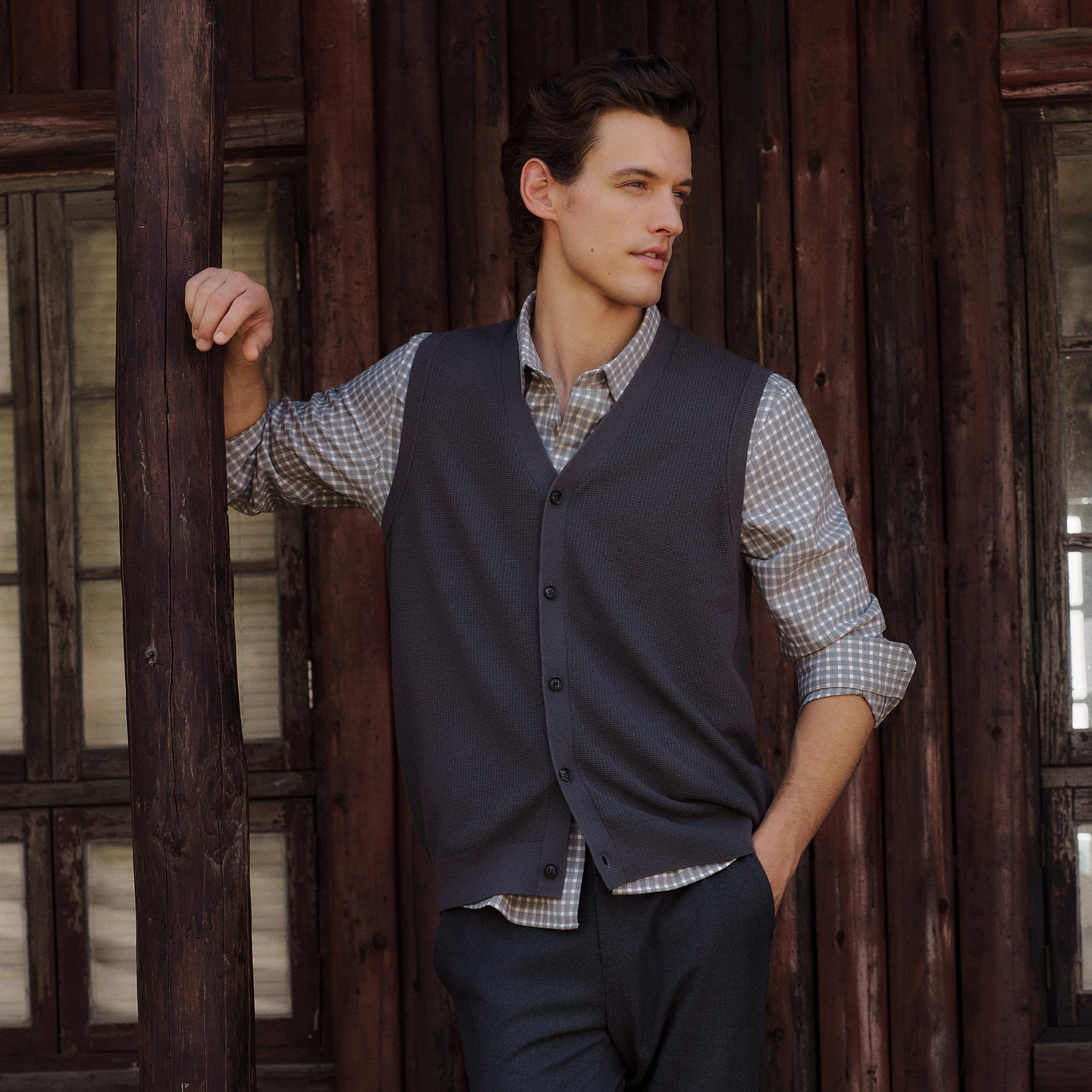 【丝光澳毛】EMZ鄂尔多斯秋冬新款抑菌复古老钱风V领背心针织衫男
