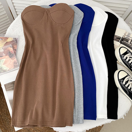 欧美ins性感百搭抹胸修身显瘦连衣裙短裙包臀裙打底裙女带胸垫