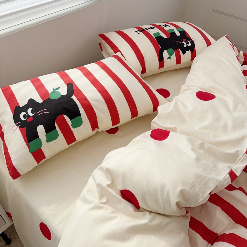 条纹小猫四件套全棉卡通可爱