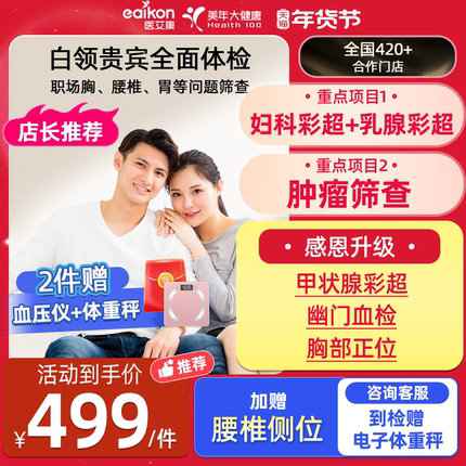 美年大健康体检套餐女士体检卡肿瘤筛查甲状腺彩超胸部正位旗舰店