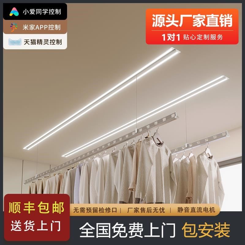 隐形晾衣a架电动升降阳台家用智能遥控隐藏式衣架嵌入式自动晾衣