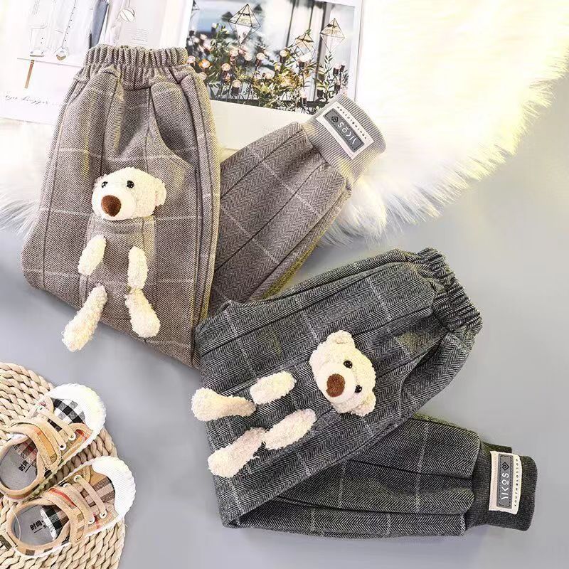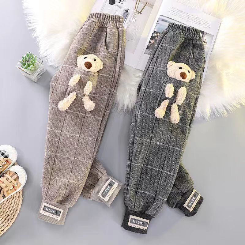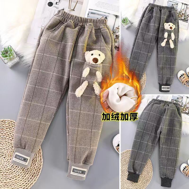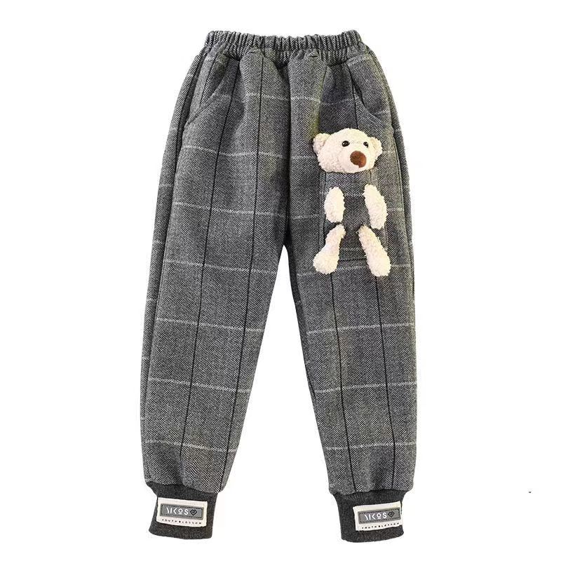 女童长裤一体加绒休闲裤外穿小熊