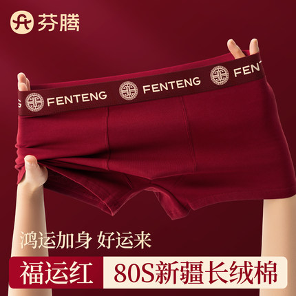 芬腾本命年红色内裤男士纯棉抗菌男生马年平角结婚礼物男款四角裤