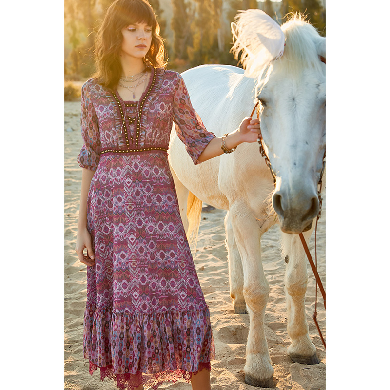优雅大摆裙聚酯纤维印花