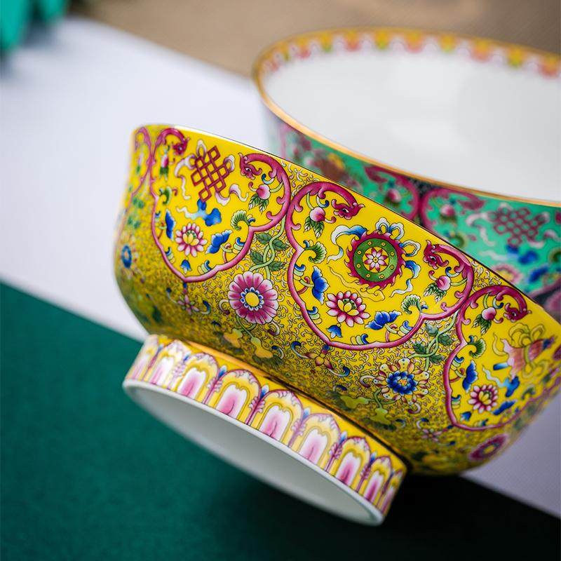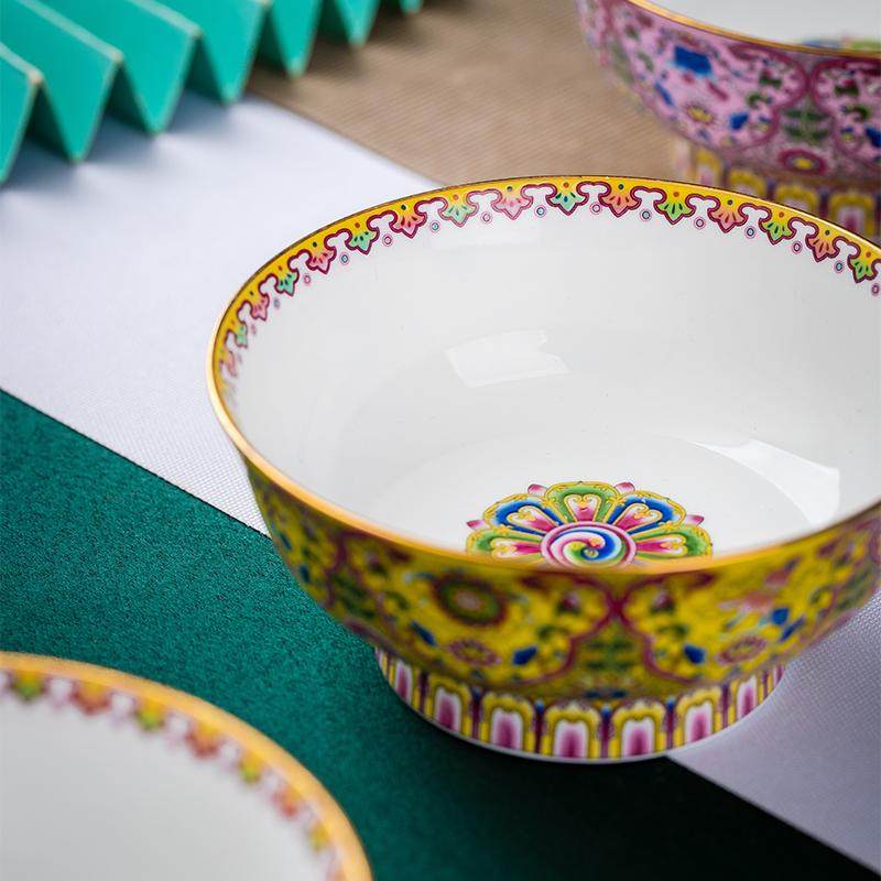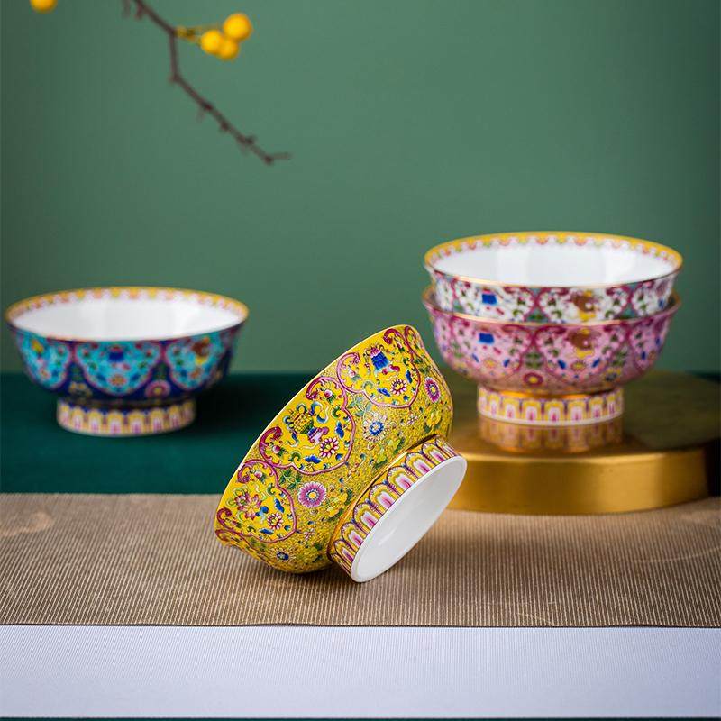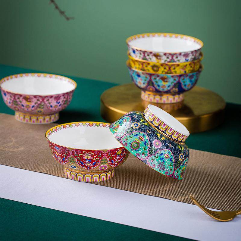 景德镇陶碗家用喝汤吃饭碗民族碗珐琅彩新款轻奢酥油茶碗八宝饭碗