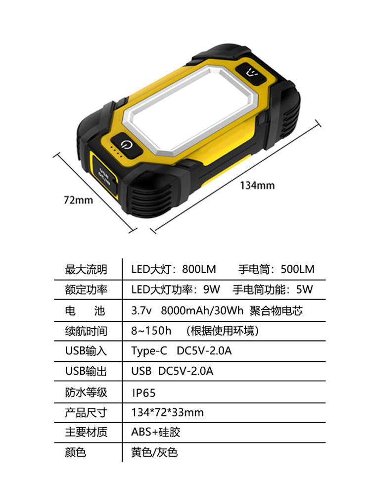 双磁力检修工作灯X102户外野露营大容量续航150小时应急帐篷修车Y