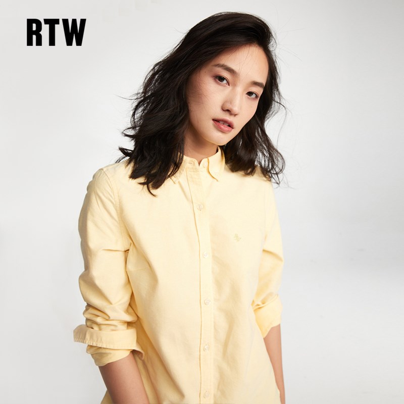 RTW美式牛津布收腰白衬衫女春装新复古洋气纯棉休闲上衣商务正装