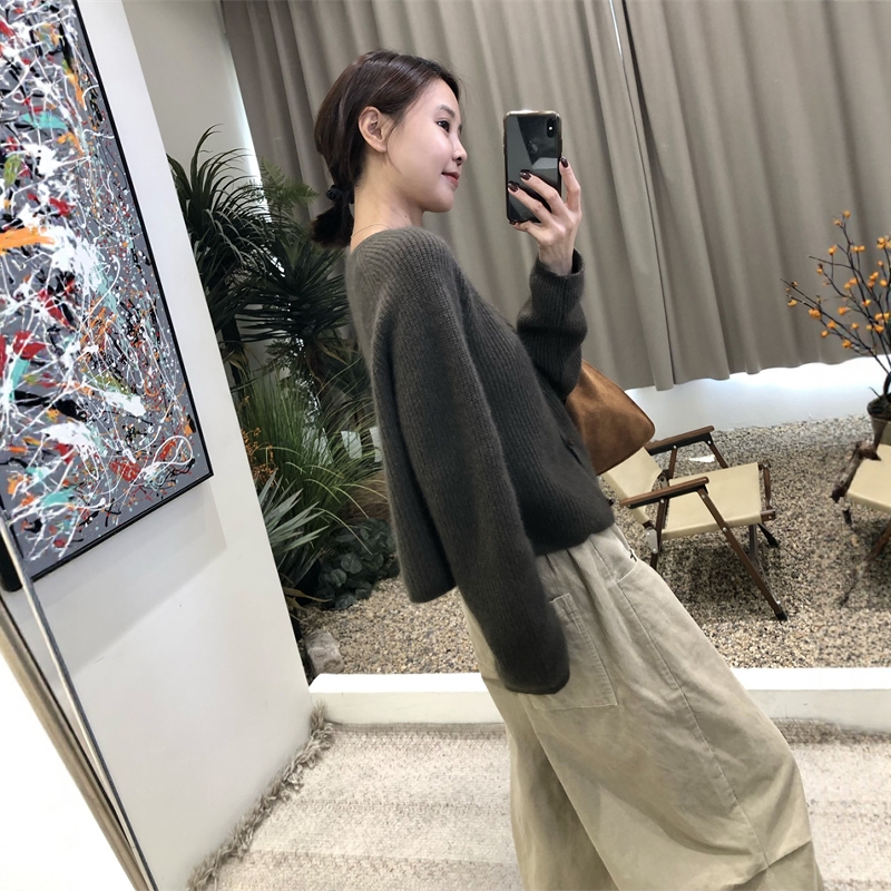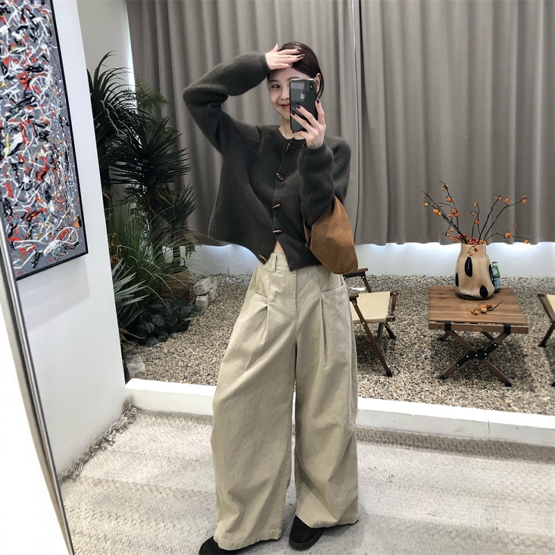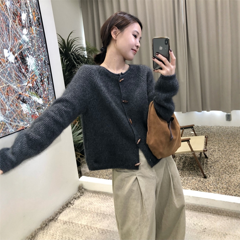 复古牛角扣羊毛针织毛衣开衫女