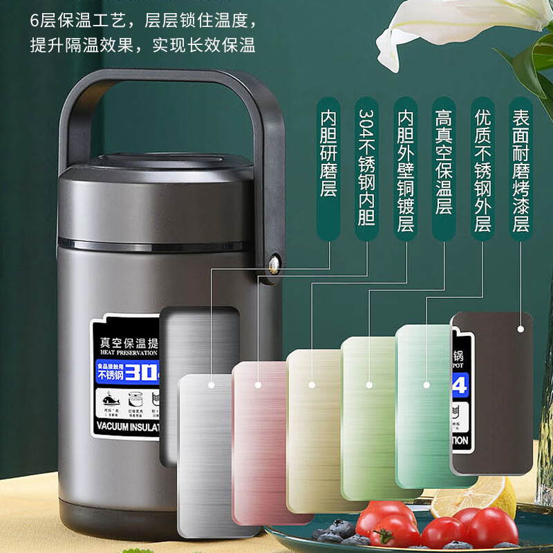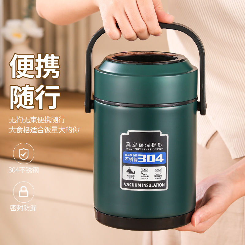 贝瑟斯真空保温学生饭盒304不锈钢便当盒保温桶上班族便携提锅 2L