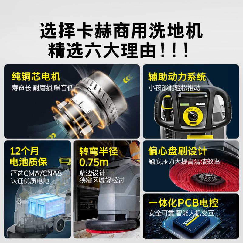德国卡赫BD工业洗地机商用工厂车间商超餐厅手推式无线拖地机BD50