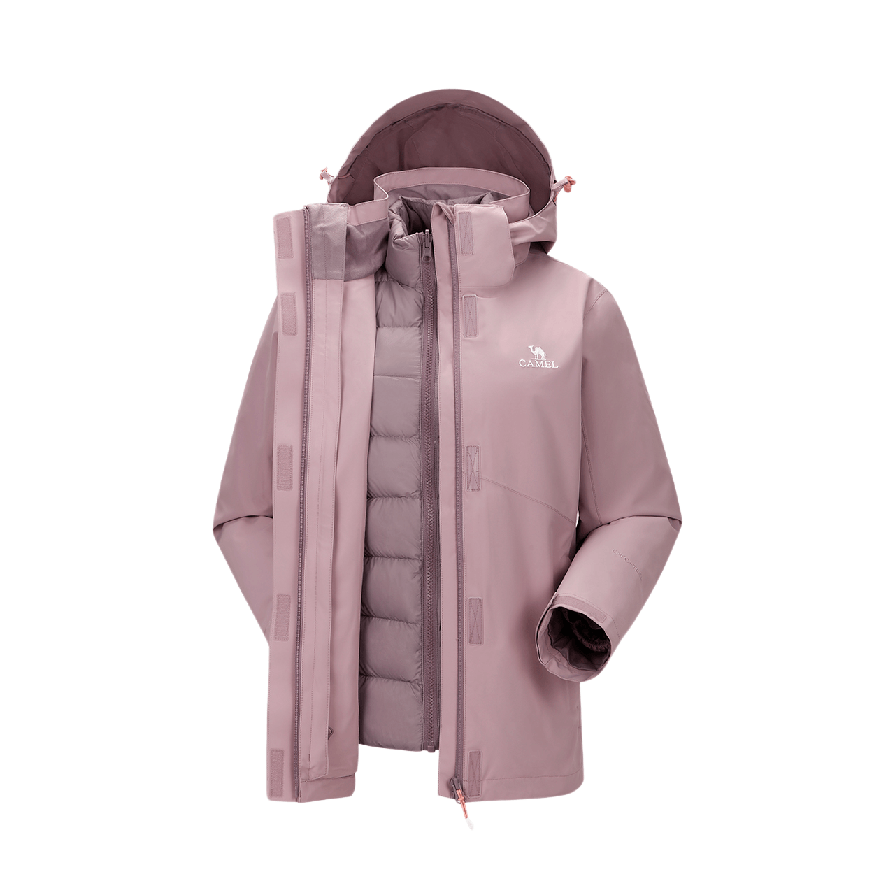 骆驼羽绒服冲锋衣女外套三合一加绒加厚防风防水登山服