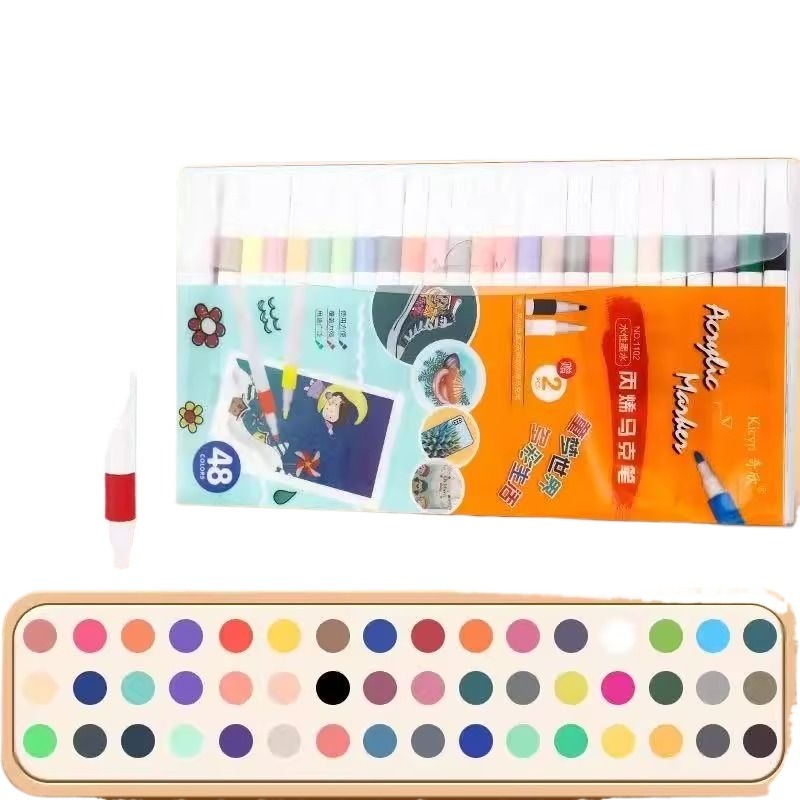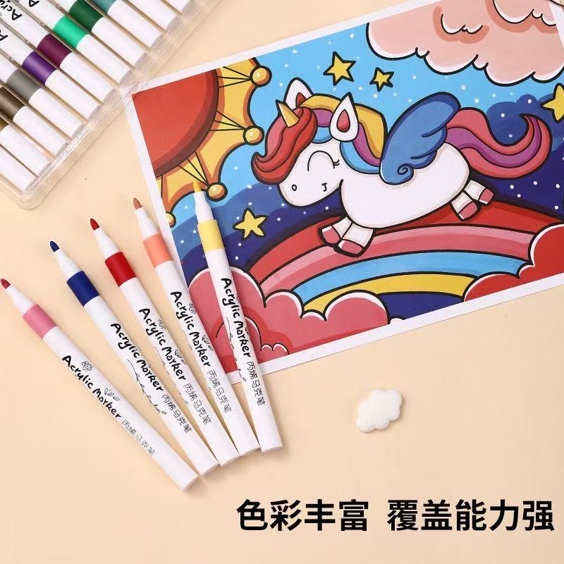 彩色美术绘画笔丙烯马克笔不透纸叠色儿童水彩笔软头学生美术画画专用可水洗丙烯马克笔速干叠色学生儿童早教