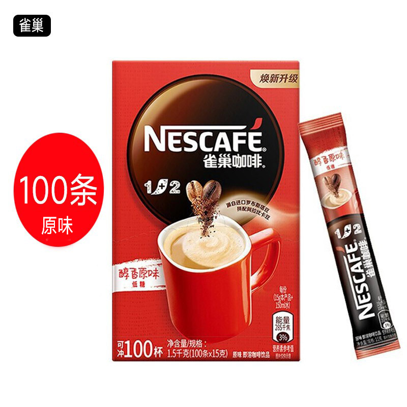 授权店雀巢咖啡1+2原味100条盒装方包三合一速溶醇香提神非微研磨