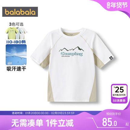 【商场同款】巴拉巴拉男童短袖t恤中大童速干t夏季儿童白色上衣薄
