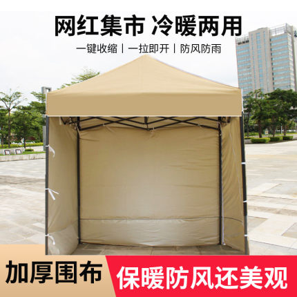 户外集市摆摊网红卡其色四面围布保暖防风雨晒帐篷广告遮阳棚夜市