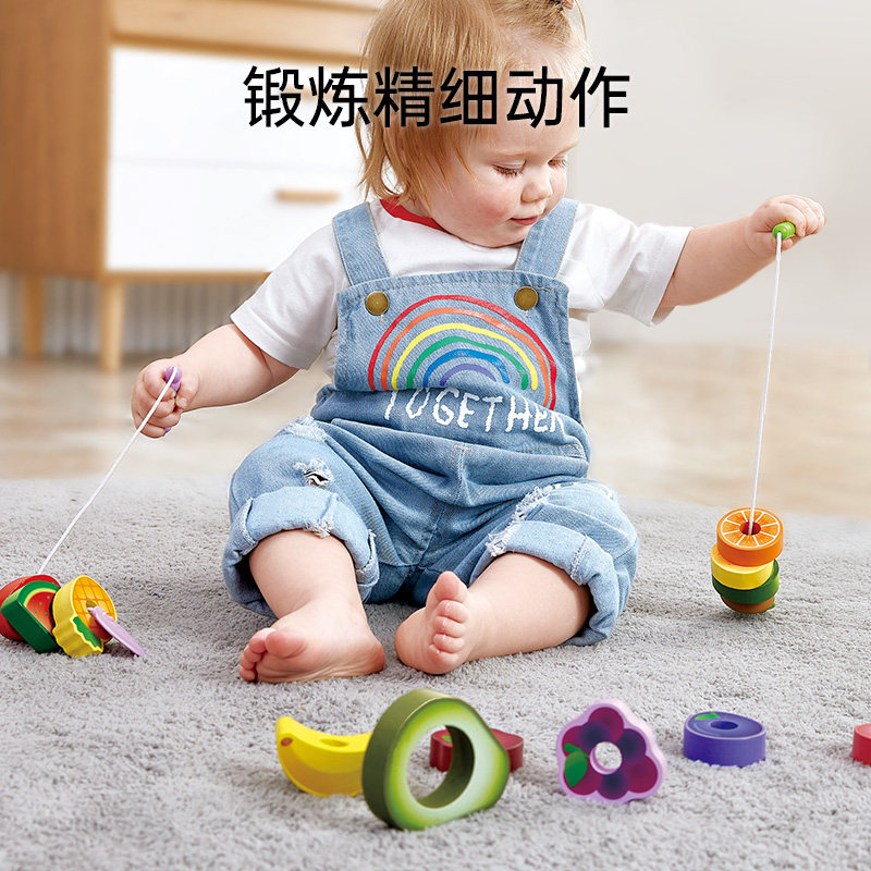 Hape串珠贪吃虫水果穿穿乐穿绳大颗粒积木宝宝早教儿童益智玩具