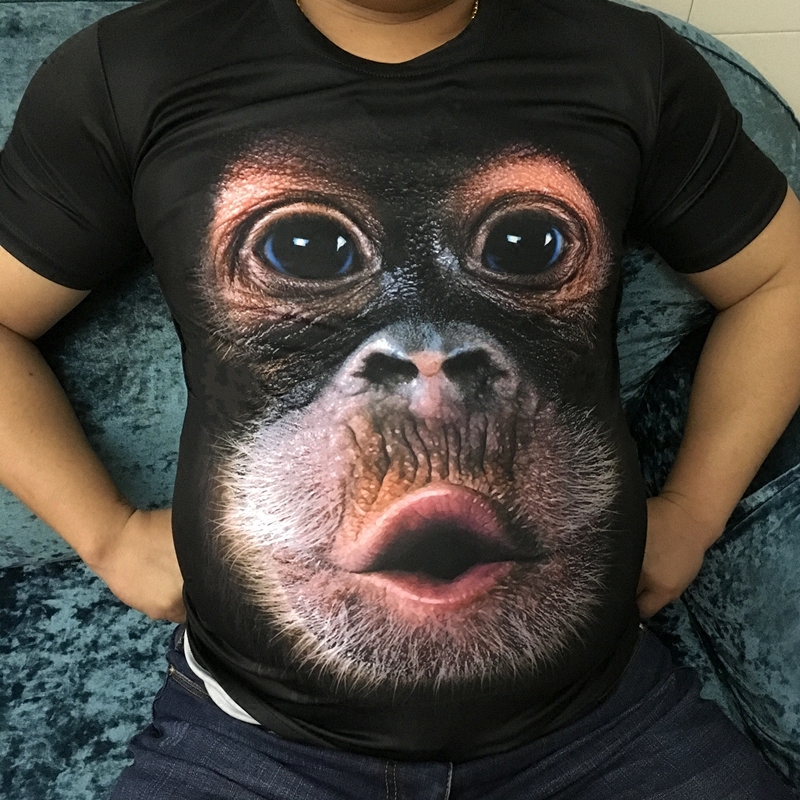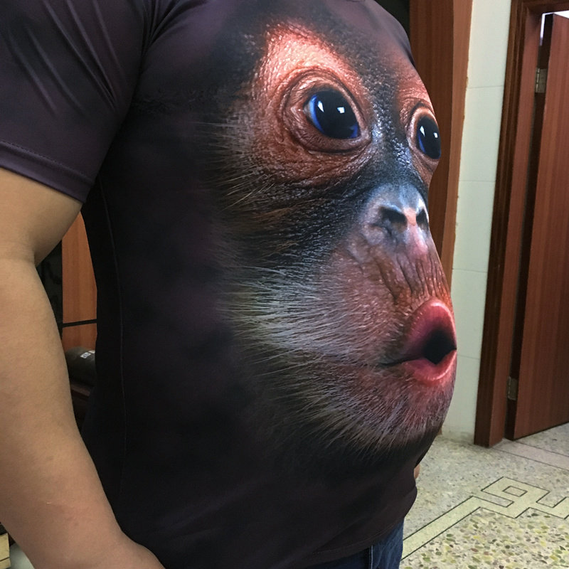 3D个性立体搞笑猩猩猴子短袖男大码胖子夏季冰丝薄款t恤印花衣服