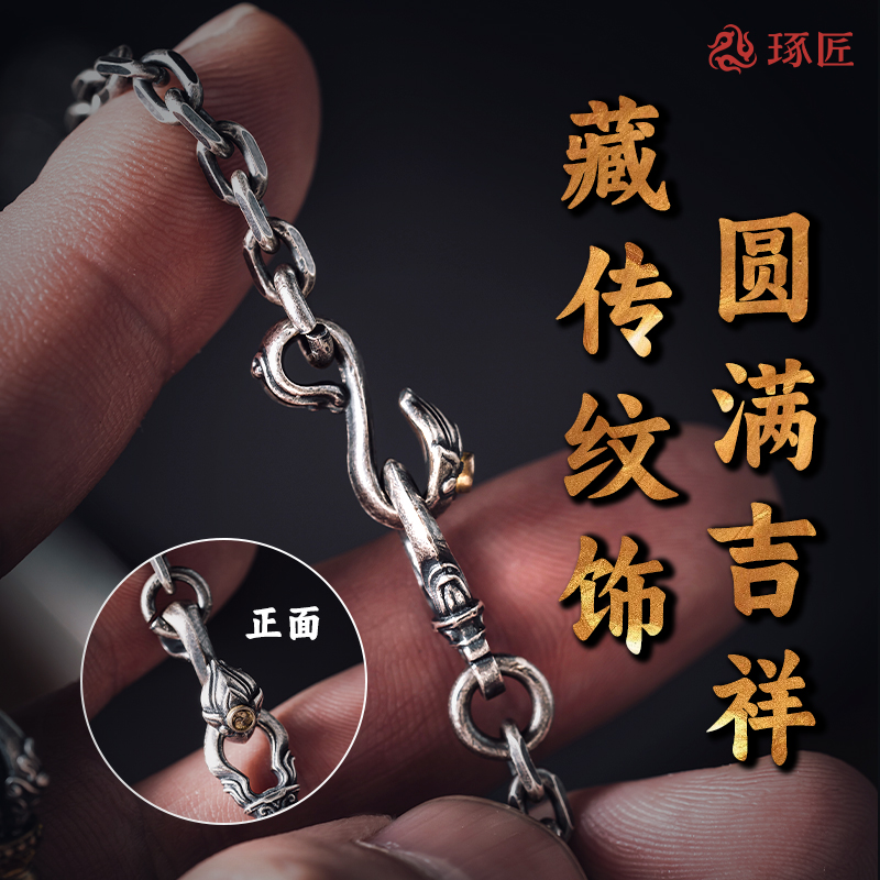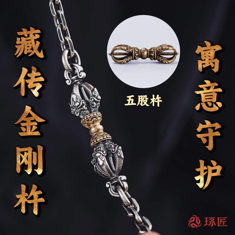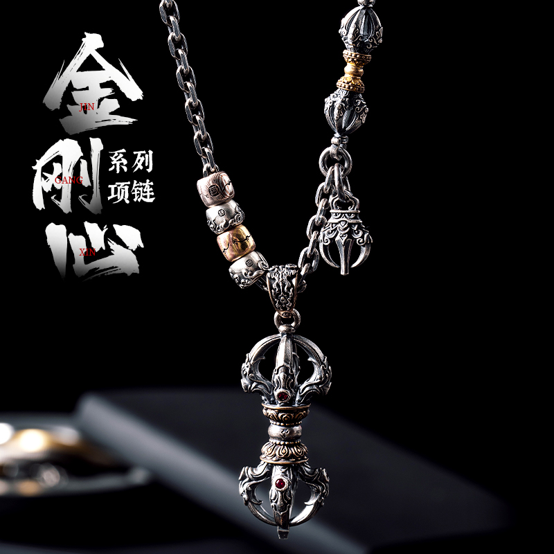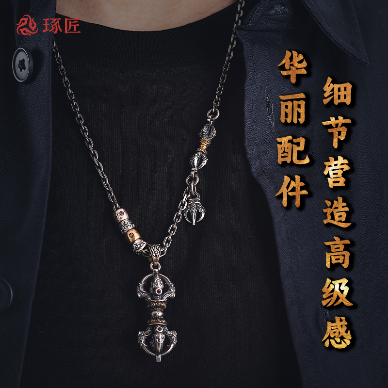 琢匠金刚心项链男款复古配饰颈链男士藏式定制银饰降魔杵太角链子
