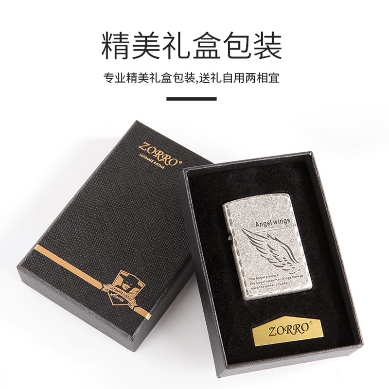 正品佐罗防风煤油打火机古银天使翅膀个性防风男士创意礼物送礼男