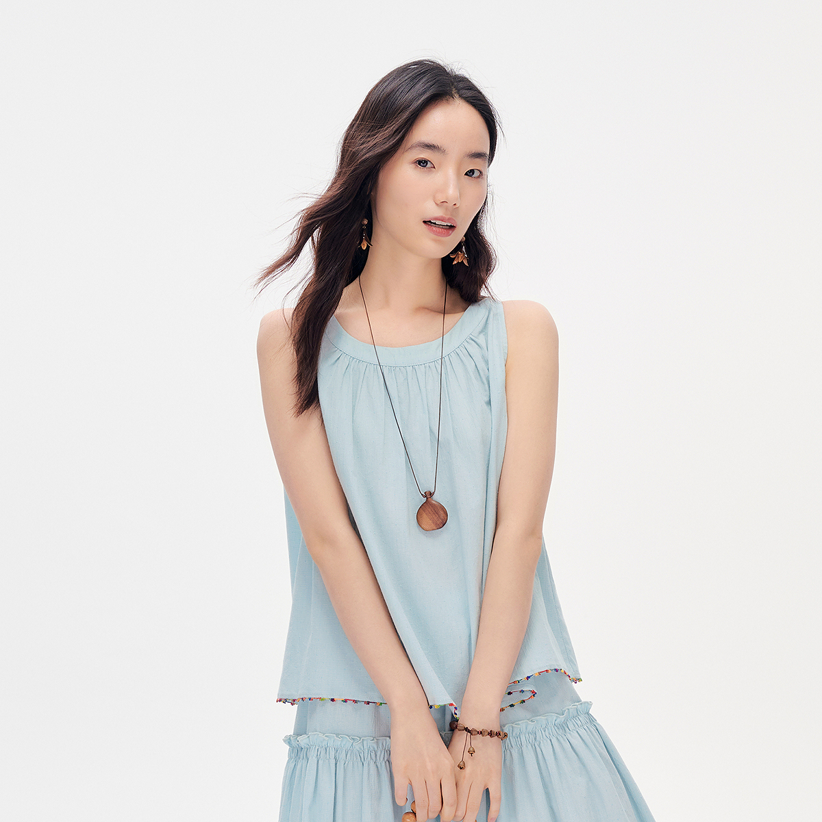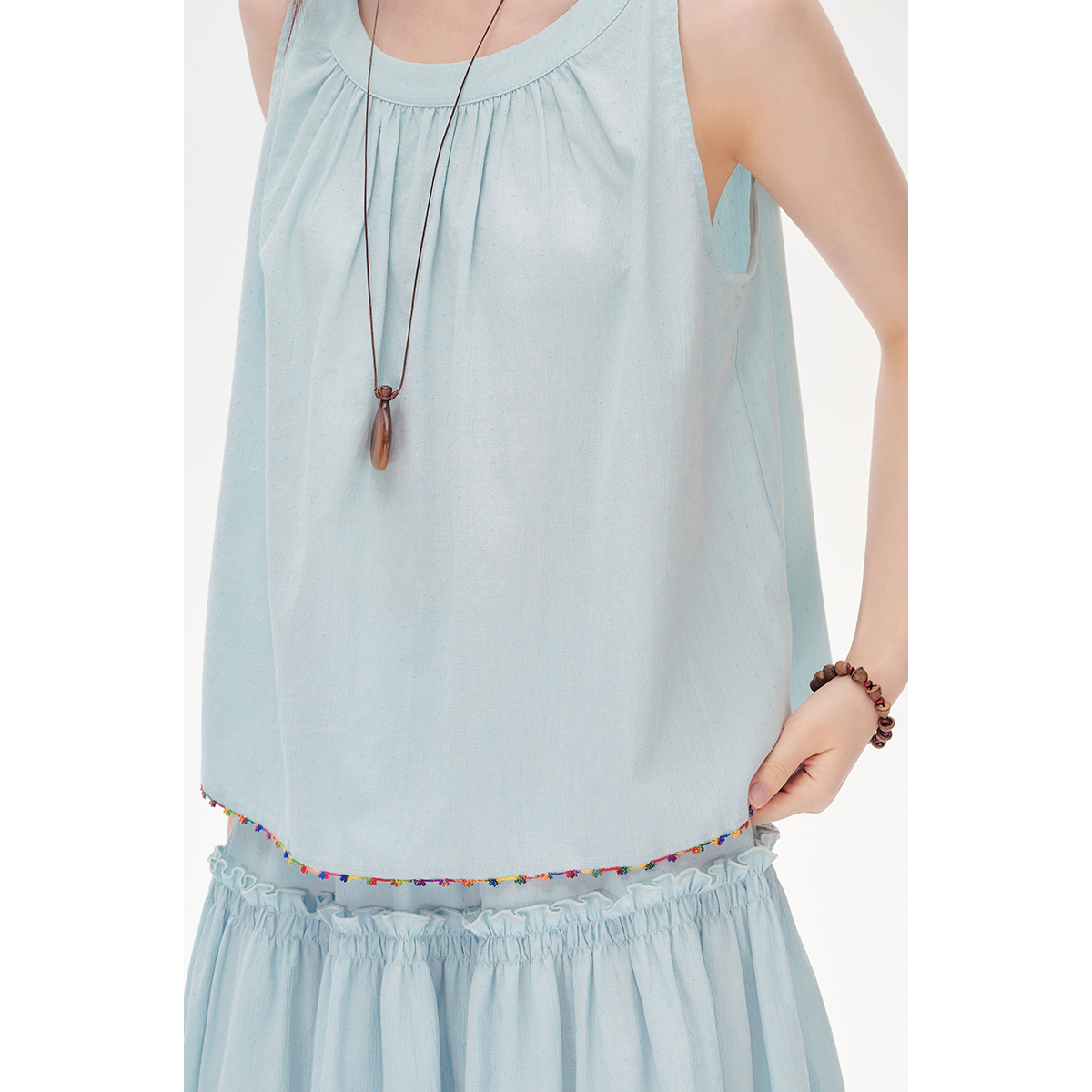 飞鸟和新酒设计感无袖衬衫女短款2025夏季新款肌理感休闲上衣