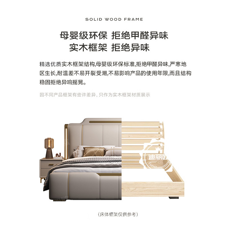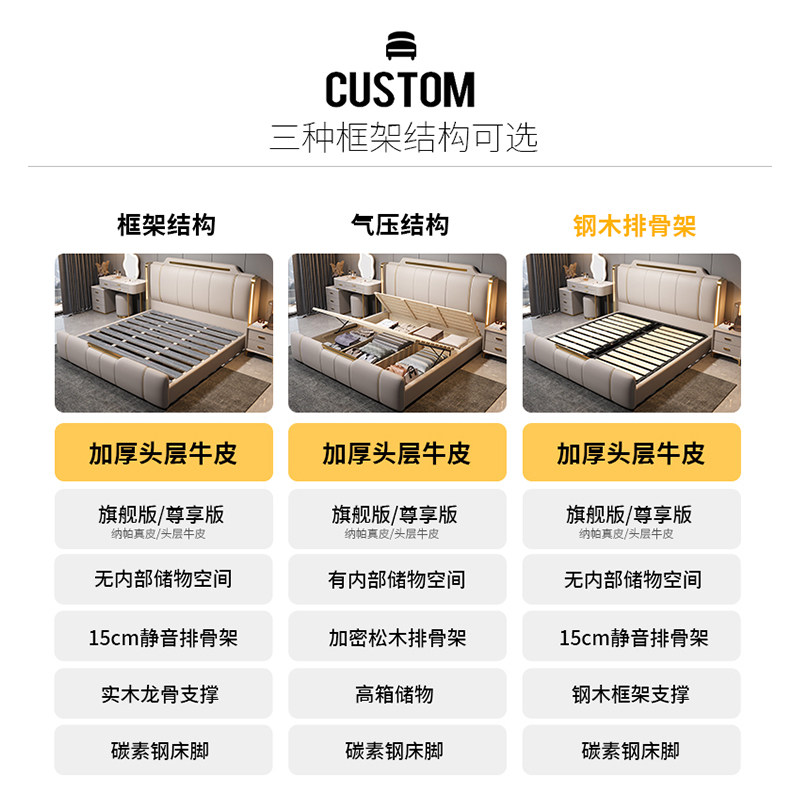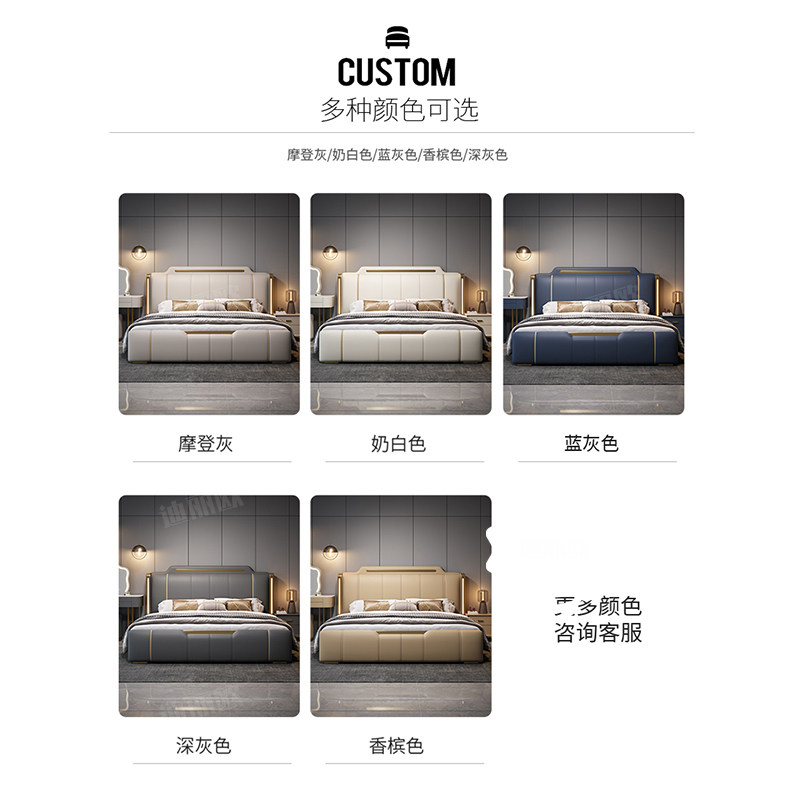 尚品宅配2025新款意式轻奢真皮床1.8m主卧高端大气双人床软包婚床